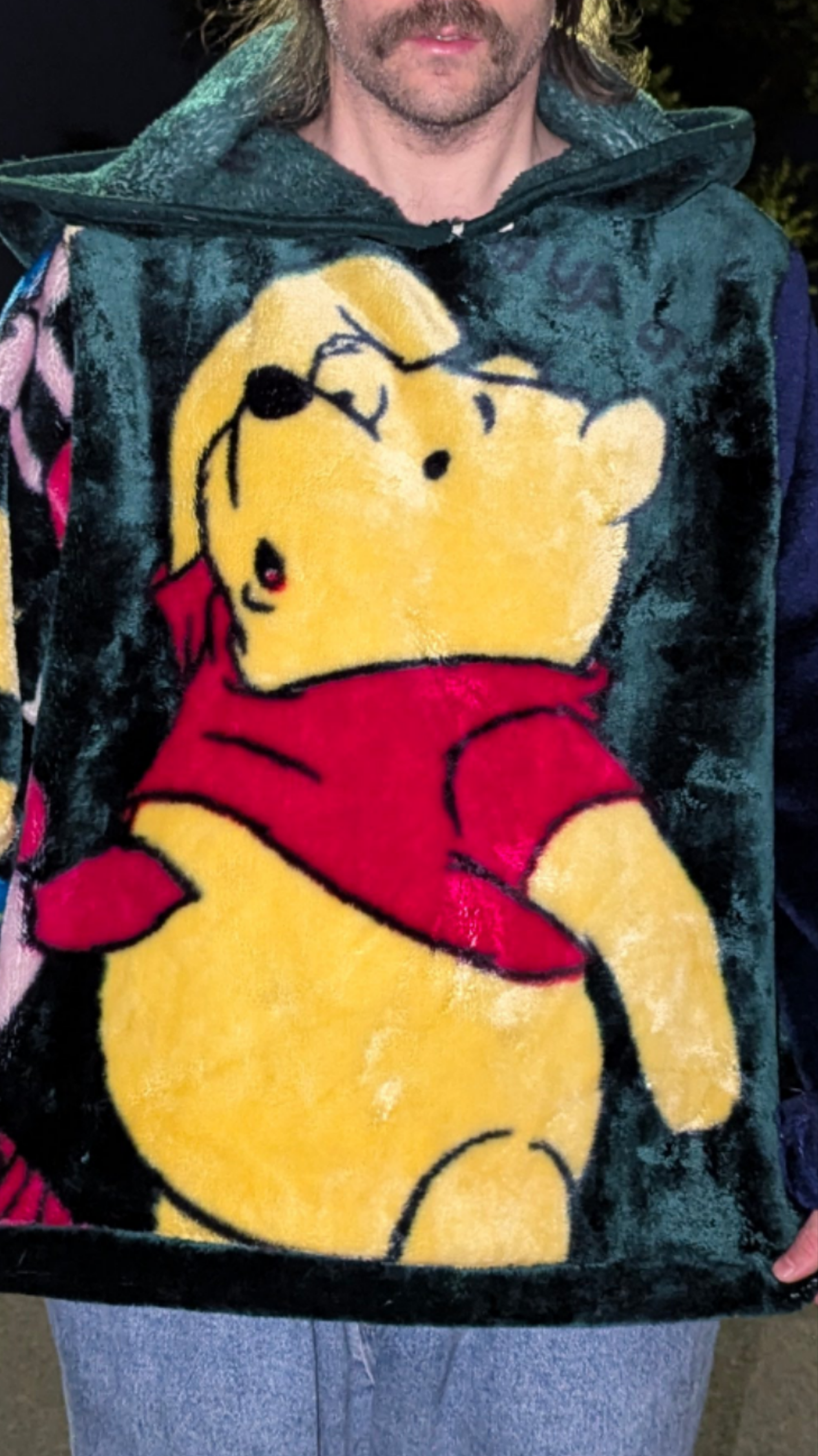 Conçu à la main à partir de deux couvertures épaisses de seconde main trouvées en friperie. Chaud.