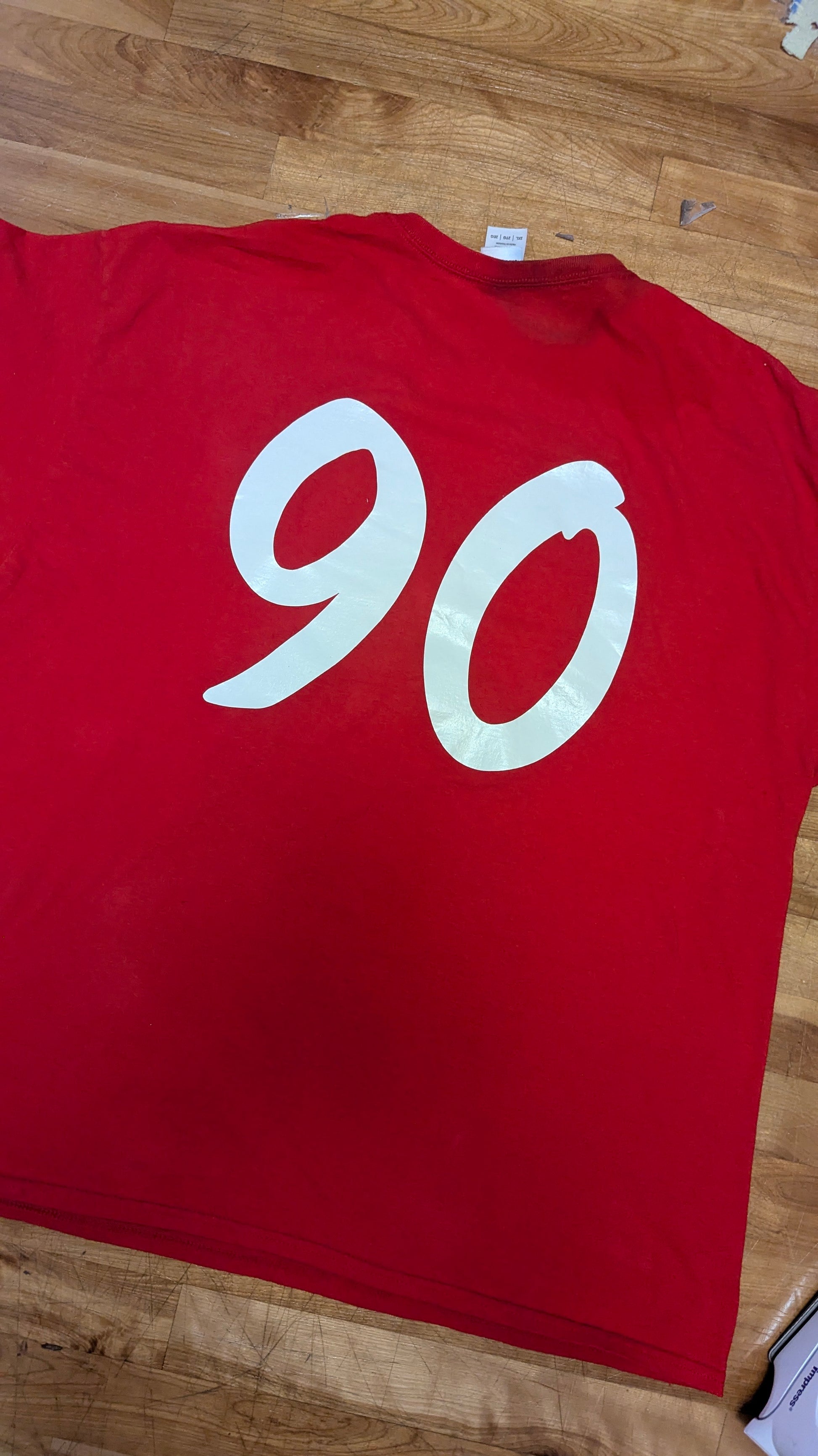 Visage de Murphy Cooper serigraphié en halftone sur un t-shirt seconde main déniché en friperie.